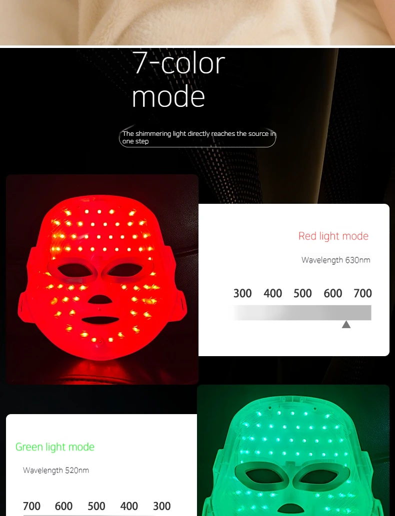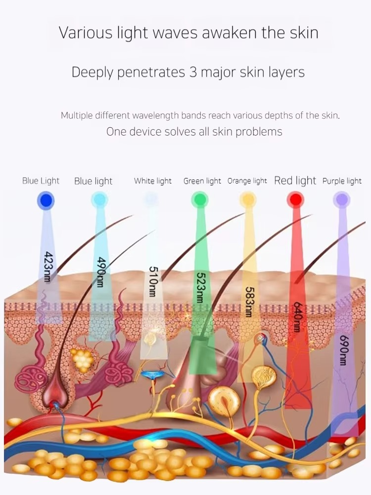 Each of the 7 light colors penetrates the skin at different depths, delivering tailored benefits for a radiant, youthful glow: