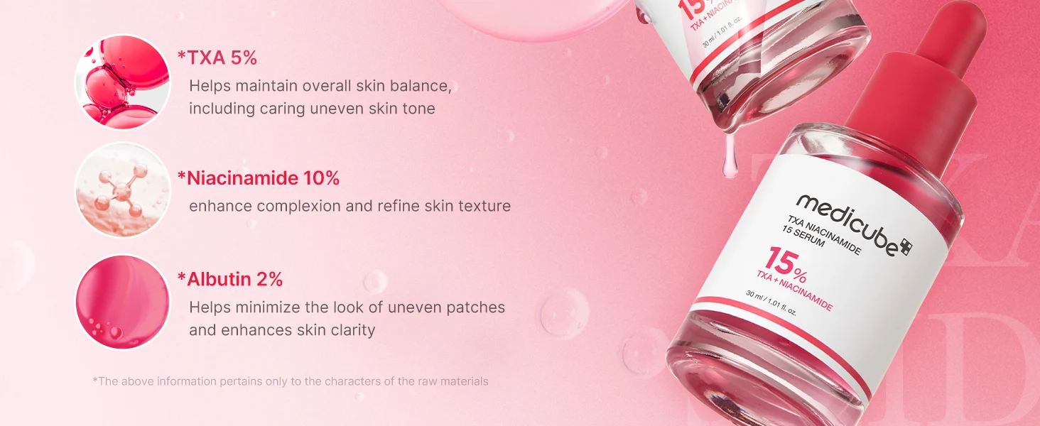 Medicube TXA Niacinamide 15% Serum is a potent, yet gentle brightening serum that: