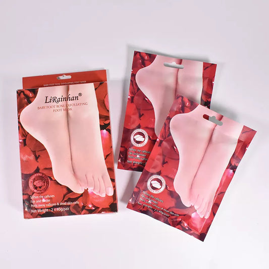 2 pairs Red Rose Exfoliating Foot Mask Effective for Dry and Cracked feet, Baby soft feet